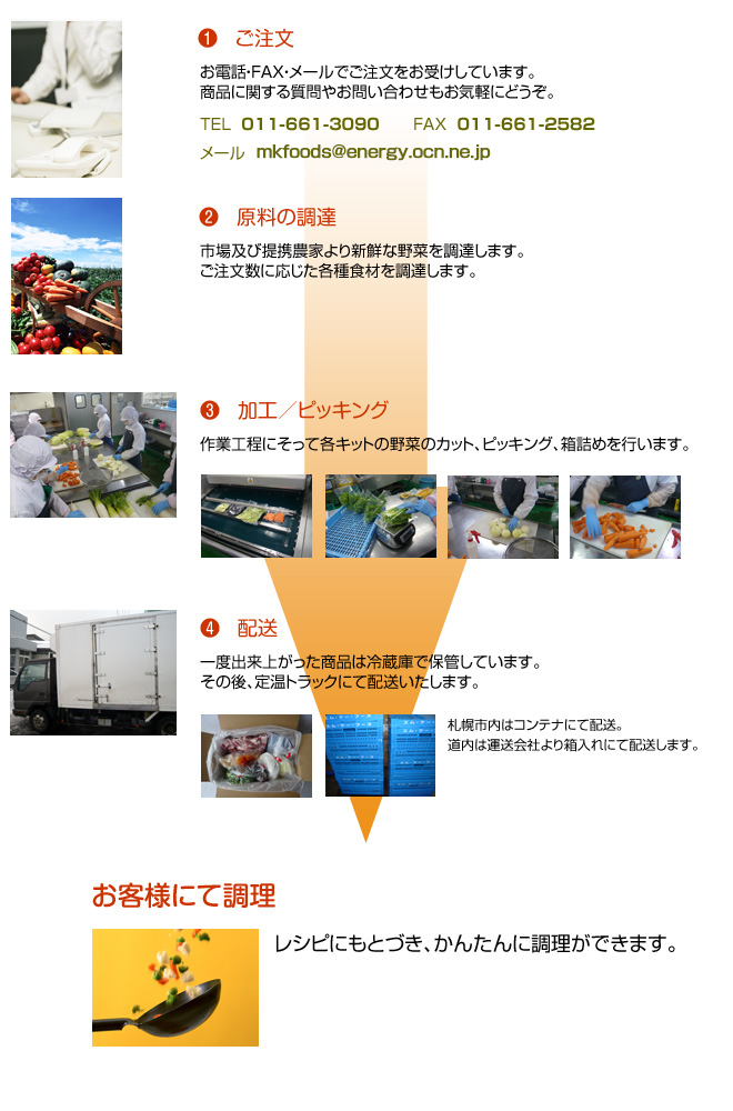 ニーズに合わせた和・洋・中・総菜キットを提案・製造・発送しています。記載している商品は一例です。お気軽にご相談ください。